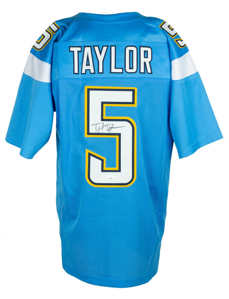 Custom on-field style jersey. Everything sewn on, size XL. Hand-signed in black felt-tip pen by Tyrod Taylor. The lot / autograph(s) includes an official James Spence Authentication (JSA) hologram and matching COA for authenticity purposes. The signing of this item was witnessed by JSA.Authentication: JSA COA