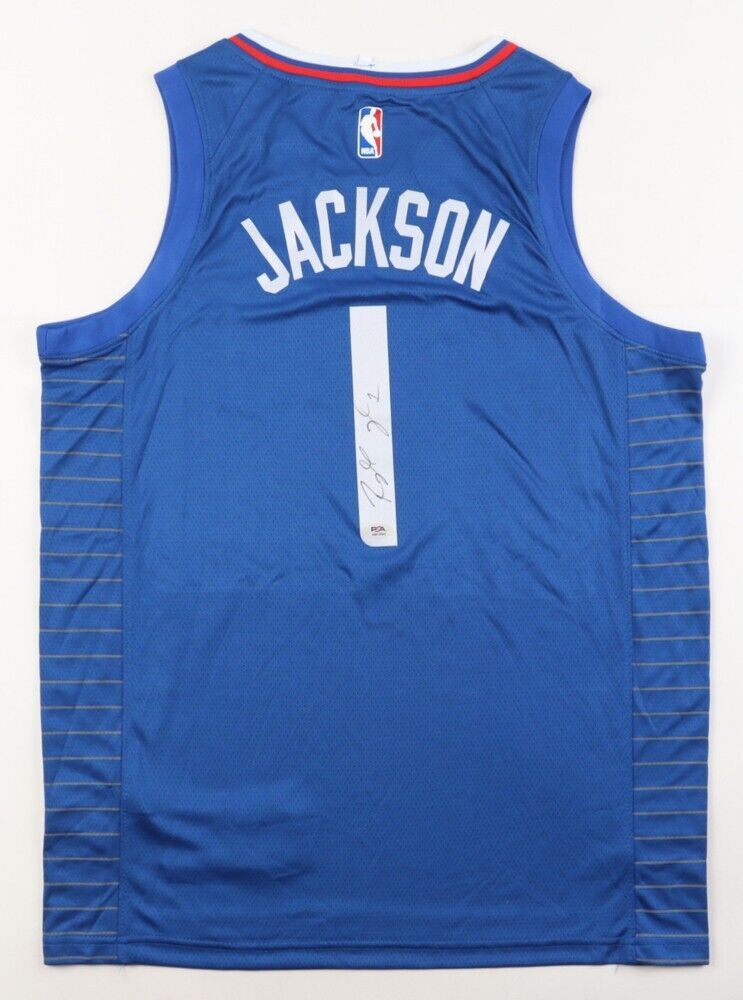 Nike NBA Replica jersey. Everything is pressed on, size Adult Large 48. Hand-signed by Reggie Jackson.The autograph(s) includes an official PSA/DNA hologram and QR Code Card for authenticity purposes.Authentication: PSA Hologram with Code Card