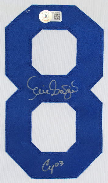 This Autographed White Pro Style Jersey with the inscription of "Cy 03" has been Personally Signed by Eric Gagne of the Los Angeles Dodgers. This item is 100% Authentic to include a hologram by Beckett Authentication Services. This item may come with the new Beckett Authentication hologram that has a scannable QR code rather than the traditional COA. If you would like to have a COA, you are welcome to reach out to Beckett for a printed certification once you receive your item. This is a BAS Witnessed Protection Program item which means a Beckett Authentication Service representative was present when this item was being signed. We have multiples of this same item. While the photographs are representative of this item, the size, placement and strength of the signature may vary. Each item is hand signed, therefore, each autograph is unique. This is a X-Large sized, non-branded, custom-stitched Jersey.