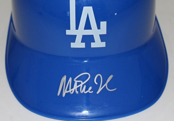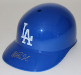 Los Angeles Dodgers souvenir batting helmet. Hand-signed in silver paint pen by Magic Johnson (Lakers HOF). The autograph includes an official Schwartz Sports Hologram and matching COA for authenticity purposes.Authentication: Schwartz Sports COA