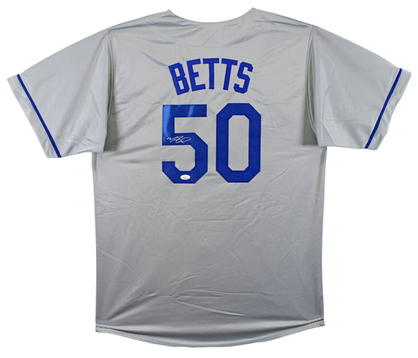 This Autographed Grey Pro Style Jersey has been Personally Signed by Mookie Betts of the Los Angeles Dodgers. This item is 100% Authentic to include a Certificate of Authenticity (COA) / hologram by JSA. We conducted an autograph signing with Mookie Betts where multiples of the same item were signed. While the photographs are representative of this item, the size, placement and strength of the signature may vary. Each item is hand signed, therefore, each autograph is unique. This item can be verified through JSA. This is a X-Large sized Jersey.