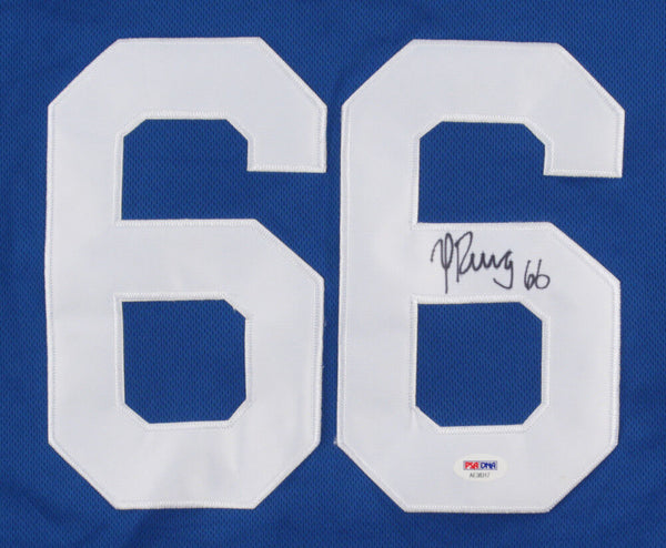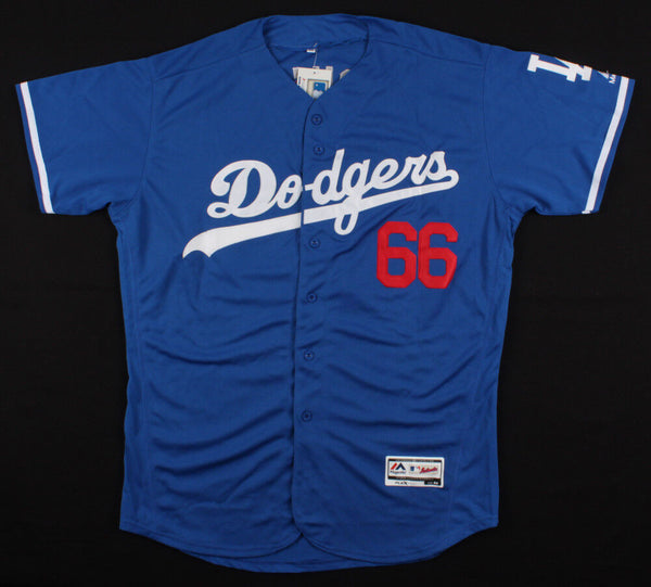 Custom on-field style jersey. Everything is sewn on, size 48. Hand-signed in black felt-tip pen by Yasiel Puig. The lot / autograph(s) includes an official PSA/DNA hologram for authenticity purposes.Authentication: PSA Hologram