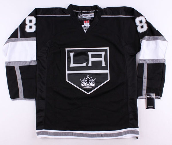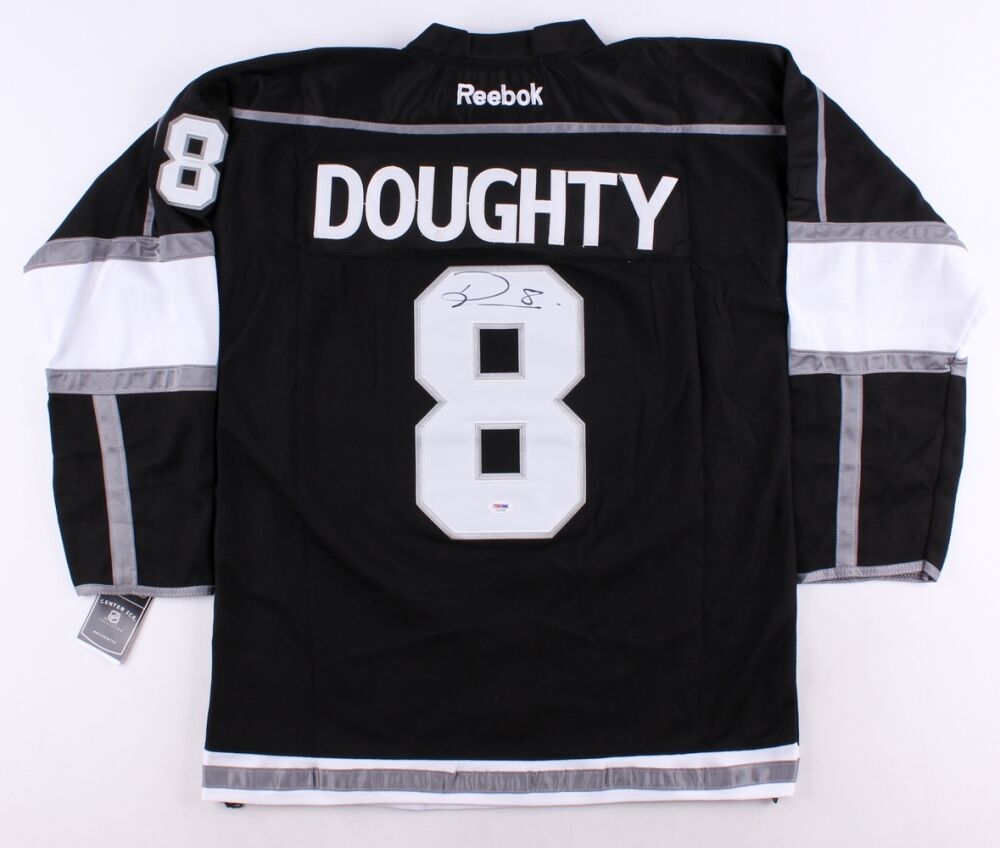Reebok on-ice style jersey. Everything is sewn on, size 50. Hand-signed in black felt-tip pen by Drew Doughty. The autograph includes an official PSA/DNA hologram and matching COA for authenticity purposes.Authentication: PSA COA