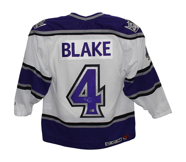 Rob Blake Autographed Los Angeles Kings White Replica Jersey Beckett 35806 The number in the listing title is just an inventory sku for our records and is not the authentication number. The item pictured is a stock photo unless otherwise noted. This is a Los Angles Kings replica hockey jersey that was personally autographed by Rob Blake. Includes a certificate of authenticity from Beckett Authentication Services (BAS) and Denver Autographs.