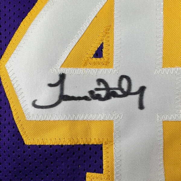 Autographed/Signed James Worthy Los Angeles LA Purple Basketball Jersey JSA COA Jersey has no brand names or logos. This is a custom jersey and was not manufactured by or in any manner associated with any professional sports league or manufacturer. This custom jersey carries no professional sports league designation. The item is intended to be an autographed collectible. The custom jersey displays the name and number of the player. This item in no way is affiliated with or connected to any professional sports organization. Size is XL.