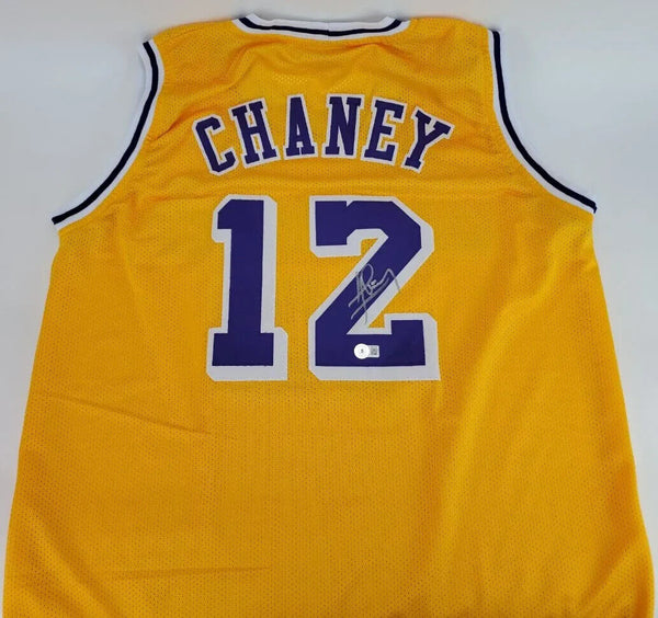 This autographed jersey has been personally hand-signed by Don Chaney of the Los Angeles Lakers.This autograph is certified by Beckett Authentication Services (BAS) Witness Certification. That means that a Beckett representative was present when this item was signed. It comes with the numbered authentication hologram with a QR code that verifies the authentication on the Beckett website.Custom on-field style jerseys are a more affordable option for autograph seekers. These jerseys do not have any brand name or tags and are made in the Philippines. They feature stitched on names and numbers and are made to look very similar to the on-field jerseys that the players wear. These custom jerseys are very commonly used in the memorabilia industry.