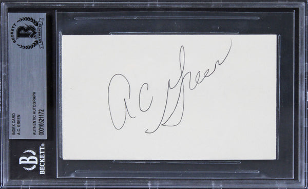 This Autographed 3x5 Index Card has been Personally Signed by A.C. Green of the Los Angeles Lakers. This item is 100% Authentic, it comes slabbed and authenticated by Beckett Authentication Services. The authenticity can be verified on Beckett Authentication Services website.