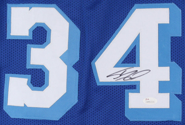Custom on-court style jersey. Everything is sewn on, size XL. Hand-signed in black felt tip pen by Shaquille O'Neal (HOF). The lot / autograph(s) includes an official James Spence Authentication (JSA) hologram and matching COA for authenticity purposes. The signing of this item was witnessed by JSA.Authentication: JSA COA
