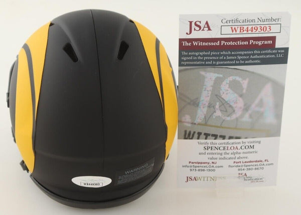 Riddell Los Angeles Rams eclipse alternate speed mini helmet has been hand-signed by Braden Fiske.The autograph(s) includes an official James Spence Authentication (JSA) hologram and matching COA for authenticity purposes. The signing of this item was witnessed by JSA.Authentication: JSA COA