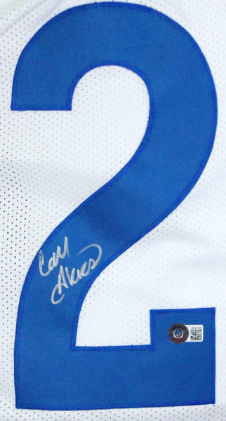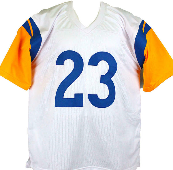 Cam Akers Autographed White Pro Style Jersey-Beckett W Hologram *Silver THIS IS NOT AN NFL JERSEY. THIS HAS NO TAGS, NO LOGOS, NO EMBLEMS. This is a Cam Akers of the Los Angeles Rams hand autographed custom made (non name brand) authentic style (stitched letters and numbers) jersey. This item has a Beckett Witnessed Authentication, which comes with a numbered hologram and a QR code for verification. You can view this item on the Beckett Authentication website, it shows when and where the item was signed. It was signed either at a public autograph appearance or a private signing. This is a stock photo of the item. Although you may not receive this exact item, the item you receive is virtually identical, brand new, and in great shape. Jersey size is XL.