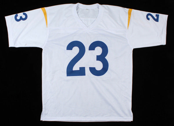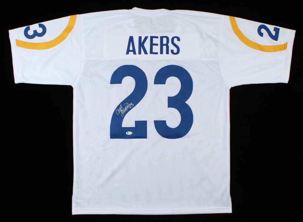 Custom on-field style jersey. Everything is sewn on, size XL. Hand-signed in black felt-tip pen by Cam Akers. The lot / autograph(s) includes an official Beckett Authentication Services serially numbered hologram and matching COA for authenticity purposes. The signing of this item was witnessed by Beckett.Authentication: Beckett COA