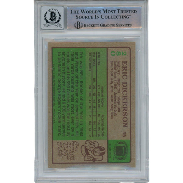 The number in the listing title is just an inventory sku for our records and is not the authentication number. The item pictured is the exact item you will receive, please see photos for condition. This is a 1984 Topps #280 Slabbed Topps Trading Card with a Grade 10 Auto that was personally autographed by Eric Dickerson includes "HOF 10". Includes a certificate of authenticity from Beckett Authentication Services (BAS) and Denver Autographs.FREE SHIPPING within the USA on orders over $10!