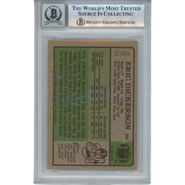 Eric Dickerson Autographed 1985 Topps #280 Grade 10 Trading Card Beckett 52940