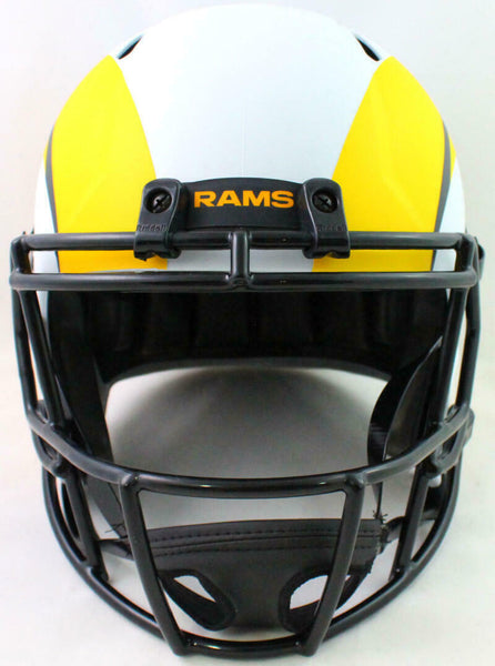 Eric Dickerson Autographed LA Rams F/S Lunar Speed Helmet w/ HOF- Beckett W*Blue This is an Eric Dickerson of the Los Angeles Rams hand autographed Riddell Football Full Size Speed Replica Helmet. This item has a Beckett Witnessed Authentication, which comes with a Beckett numbered and a matching Beckett Certificate of Authenticity. You can view this item on the Beckett Authentication website, it shows when and where the item was signed. It was signed either at a public autograph appearance or a private signing. This is a stock photo of the item. Although you may not receive this exact item, the item you receive is virtually identical, brand new, and in great shape.