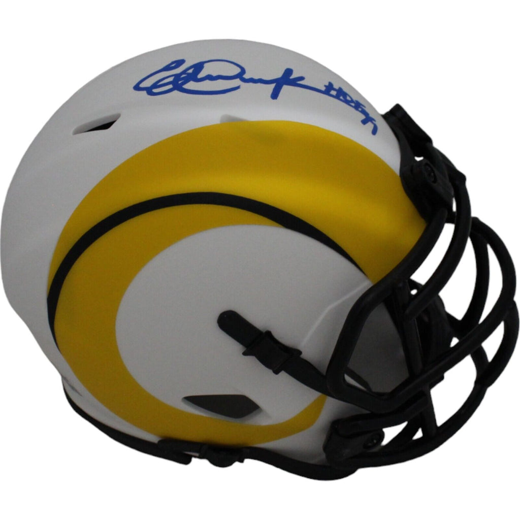 The number in the listing title is just an inventory sku for our records and is not the authentication number. The item pictured is a stock photo unless otherwise noted. This is a Los Angeles Rams Lunar Mini Helmet that was personally autographed by Eric Dickerson with "HOF" inscription. Includes a certificate of authenticity from Beckett Authentication Services (BAS) and Denver Autographs.FREE SHIPPING within the USA on orders over $10!