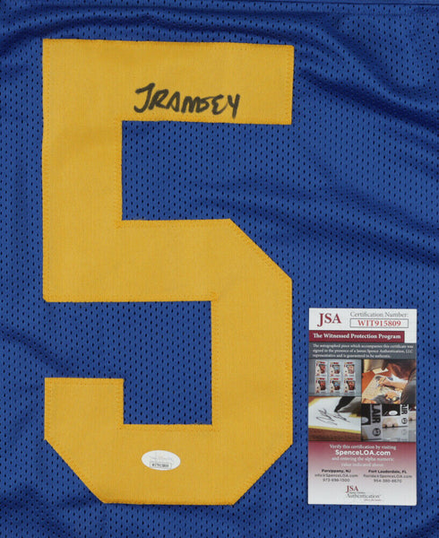 Custom on-field style jersey. Everything is sewn on, size XL. Hand-signed by Jalen Ramsey. The lot / autograph(s) includes an official James Spence Authentication (JSA) hologram and matching COA for authenticity purposes. The signing of this item was witnessed by JSA. Authentication: JSA COA