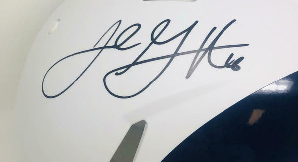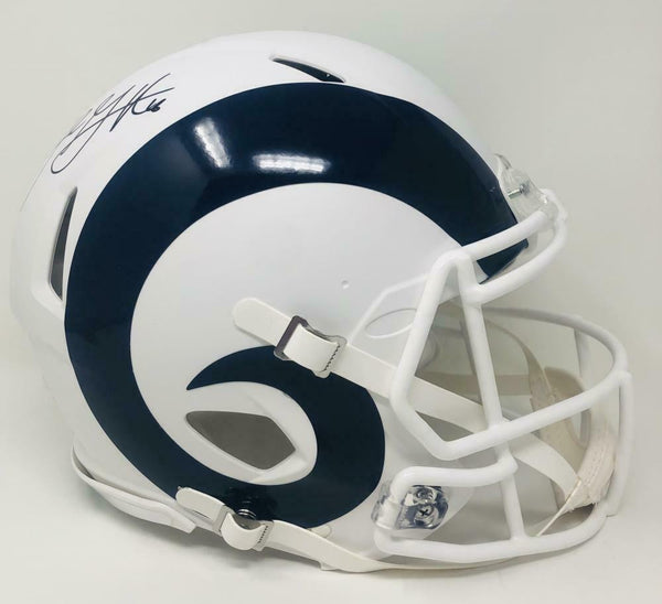 This speed authentic white matte helmet has been personally hand-signed by jared goff. it is officially licensed by the national football league and comes with an individually numbered, tamper-evident hologram from fanatics authentic. to ensure authenticity, the hologram can be reviewed online. this process helps to ensure that the product purchased is authentic and eliminates any possibility of duplication or fraud.the autograph includes an official fanatics hologram and matching coa for authenticity purposes.comes with a tamper-evident hologram from fanatics authenticatedofficially licensed by the nfl money back guarantee! if for any reason you are not completely satisfied with the quality or authenticity of your purchase, we will gladly give you a full refund or exchange, whichever you prefer up to 30 days after purchase. please feel free to e-mail us with any questions. good luck bidding!!! authenticator pre-certified authenticator: fanatics authenticated history of item: jared goff has signed this item in the presence of a representative from fanatics. describe how you came to possess this item: super sports center is a fully authorized dealer for upper deck authenticated as well as mounted memories and steiner sports. other information about you and / or the item: super sports center strives to deliver the most authentic in sports memorabilia from trusted companies like mounted memories, steiner sports and upper deck authenticated. if it exists, we can find it for you!