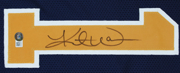 This Autographed Navy Blue Pro Style Jersey has been Personally Signed by Kurt Warner of the Los Angeles Rams. This item is 100% Authentic to include a hologram by Beckett Authentication Services. This item will come with the new Beckett Authentication hologram that has a scannable QR code rather than the traditional COA. If you would like to have a COA, you are welcome to reach out to Beckett for a printed certification once you receive your item. This is a BAS Witnessed Protection Program item which means a Beckett Authentication Service representative was present when this item was being signed. This is a stock item. We conducted an autograph signing with Kurt Warner and we have several of these available. The one you will receive will be of equal quality to the one pictured. This item can be verified through BAS Witnessed. This is a X-Large sized, non-branded, custom-stitched Jersey.