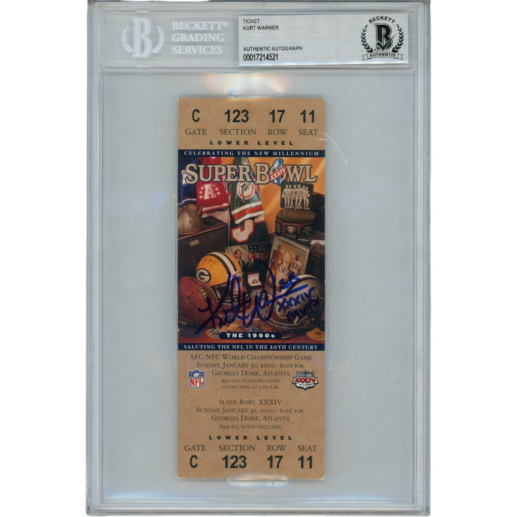 Kurt Warner Autographed Super Bowl XXXIV MVP Slabbed Ticket Stub Beckett 48978