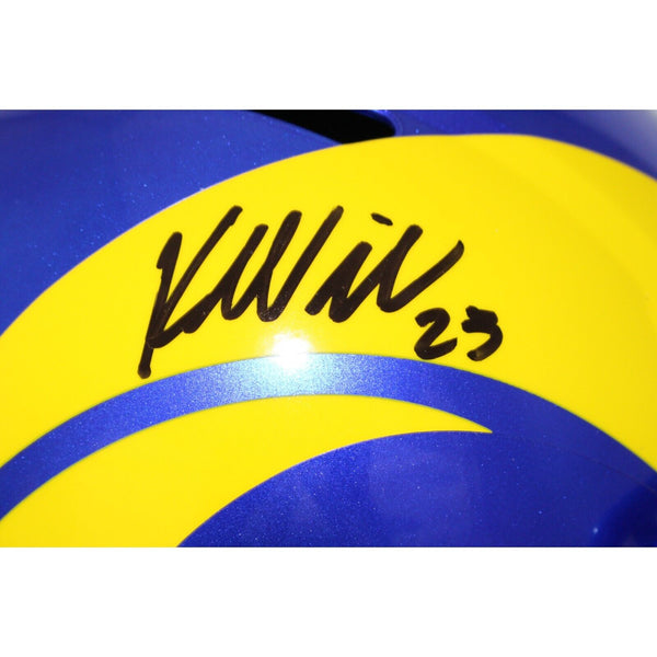 Kyren Williams Autographed/Signed Los Angeles Rams F/S Helmet Beckett 43842 The number in the listing title is just an inventory sku for our records and is not the authentication number. The item pictured is a stock photo unless otherwise noted. This is a Los Angeles Rams Full Size Replica Helmet that was personally autographed by Kyren Williams. Includes a certificate of authenticity from Beckett Authentication Services (BAS) and Denver Autographs.