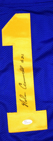 Nolan Cromwell Autographed Blue Pro Style Jersey- JSA W *Black THIS IS NOT AN NFL JERSEY. THIS HAS NO TAGS, NO LOGOS, NO EMBLEMS. This is a Hand Autographed Jersey of Nolan Cromwell. This is Custom Made (Non Name Brand) Authentic Style (Stitched Letters and Numbers). This item has a James Spence Witness Protection Authentication, which Comes with a JSA #'ed Sticker and a Matching JSA COA. You can view this item on the SpenceLOA website, it shows when and where the item was signed. It was signed either at a public autograph appearance or a Private Signing. This is a stock photo of the item. Although you may not receive this exact item, the item you receive is virtually identical and brand new in great shape. Jersey size is XL.