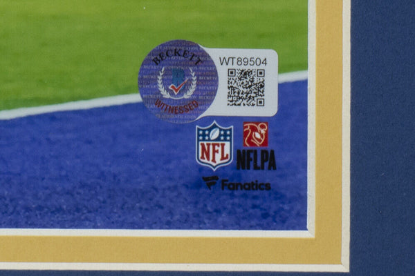 Featured is a Odell Beckham Jr. signed and framed 8x10 Los Angeles Rams Super Bowl LVI photo. This photo was hand signed by Odell Beckham Jr. and has been authenticated by Beckett authentication services. Included with the photo is a Beckett hologram and certificate of authentication. Brand new professional framing featuring double matting and engraved nameplate. The frame measures approximately 14x11 in total size, and it is ready for display. This item would make a great addition to any sports memorabilia collection.. SPECIFICATIONS Autographed By: Odell Beckham Jr. Team: Los Angeles Rams Sport: Football Authentication: Beckett Grading Services