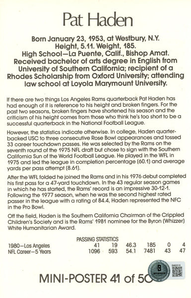 Pat Haden Autographed Los Angeles Rams Mini Poster 41/50 Beckett 46160