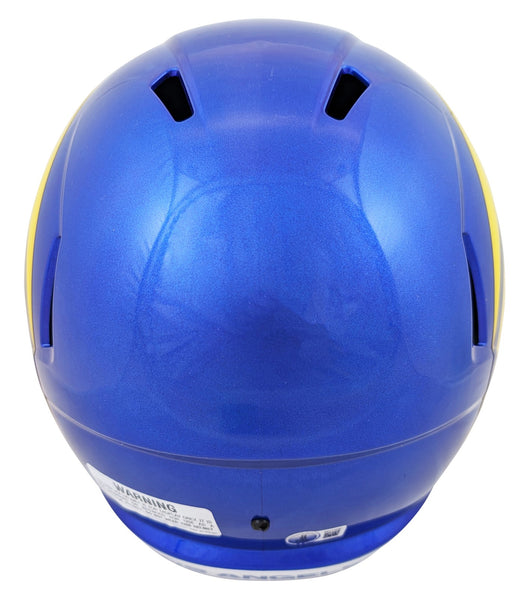 This Autographed Riddell Authentic Full Size Speed Rep Helmet has been Personally Signed by Jared Verse & Braden Fiske of the Los Angeles Rams. This item is 100% Authentic to include a hologram by Beckett Authentication Services. This item will come with an affixed Beckett Authentication Services (BAS) authentication sticker, which includes a scannable QR code to verify authenticity. Please note that Beckett no longer provides serial-numbered COA cards, and the attached BAS sticker will serve as the complete authentication for this item. This is a BAS Witnessed Protection Program item which means a Beckett Authentication Service representative was present when this item was being signed. We conducted an autograph signing with Jared Verse & Braden Fiske where multiples of the same item were signed. While the photographs are representative of this item, the size, placement and strength of the signature may vary. Each item is hand signed, therefore, each autograph is unique. This item can be verified through BAS Witnessed.