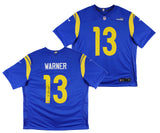 This Autographed Blue Nike Game Jersey has been Personally Signed by Kurt Warner of the Los Angeles Rams. This item is 100% Authentic to include a hologram by Beckett Authentication Services. This item will come with an affixed Beckett Authentication Services (BAS) authentication sticker, which includes a scannable QR code to verify authenticity. Please note that Beckett no longer provides serial-numbered COA cards, and the attached BAS sticker will serve as the complete authentication for this item. This is a BAS Witnessed Protection Program item which means a Beckett Authentication Service representative was present when this item was being signed. We conducted an autograph signing with Kurt Warner where multiples of the same item were signed. While the photographs are representative of this item, the size, placement and strength of the signature may vary. Each item is hand signed, therefore, each autograph is unique. This item can be verified through BAS Witnessed. Multiple sizes available. Reach out for availability.