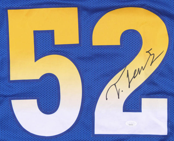 Custom on-field stye jersey. Everything is sewn on, size XL. Has been hand-signed in black felt-tip pen by Terrell Lewis. The autograph(s) includes an official James Spence Authentication (JSA) "Signature Debut" hologram and COA. "Signature Debut" is the autographed memorabilia equivalent to a rookie card. The JSA definition of a "Signature Debut" is as follows: "Any item that is autographed and received by JSA prior to the last game of the signer's official rookie season.Authentication: JSA Signature Debut COA