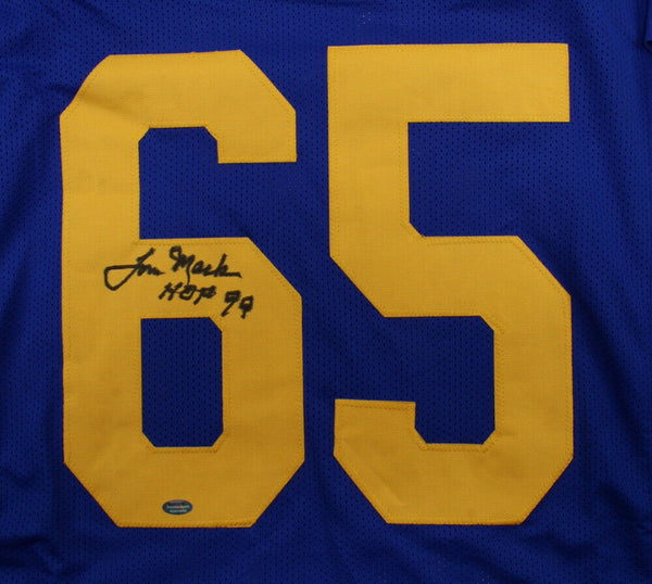 Custom on-field style jersey. Everything is sewn on, size XL. Has been hand-signed and inscribed by Tom Mack (HOF).The lot / autograph(s) includes an official Schwartz Sports Hologram and matching COA for authenticity purposes.Authentication: Schwartz Sports COA