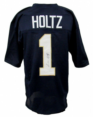 Autographed/Signed LOU HOLTZ Notre Dame Blue College Football Jersey JSA COA