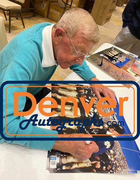 Lou Holtz Autographed/Signed Notre Dame Fighting Irish 16x20 Photo BAS 32550 The number in the listing title is just an inventory sku for our records and is not the authentication number. This is a Notre Dame Fighting Irish 16x20 photo that was personally autographed by Lou Holtz. Includes a certificate of authenticity from Beckett Authentication Services (BAS) and Denver Autographs.
