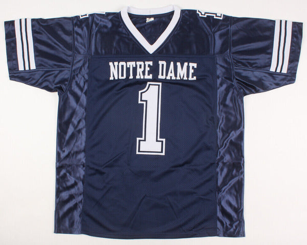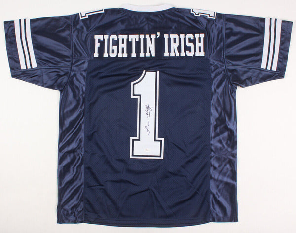 Custom on-field style jersey. Everything is sewn on, size XL. Hand-signed in black felt-tip pen by Lou Holtz (HOF). The lot / autograph(s) includes an official James Spence Authentication (JSA) hologram and matching COA for authenticity purposes. The signing of this item was witnessed by JSA.Authentication: JSA COA