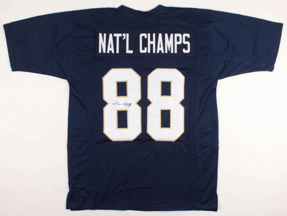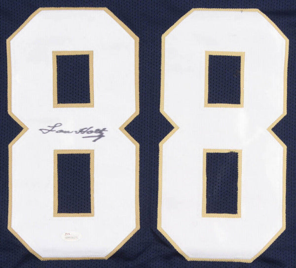 Custom on-field style jersey. Everything is sewn on, size XL. Hand-signed in black felt-tip pen by Lou Holtz. The lot / autograph(s) includes an official James Spence Authentication (JSA) hologram and matching COA for authenticity purposes. The signing of this item was witnessed by JSA.Authentication: JSA COA