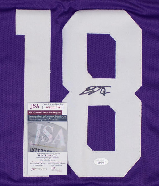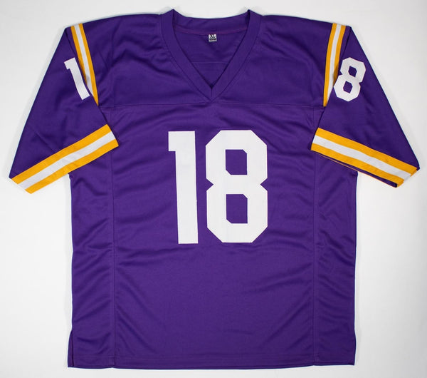 This autographed jersey has been personally hand-signed by BJ Ojulari of the LSU Tigers. This autograph is certified by James Spence Authentication (JSA). It comes with the numbered hologram and matching Certificate of Authenticity. The Signing was witnessed by JSA.Custom on-field style jerseys are a more affordable option for autograph seekers. These jerseys do not have any brand name or tags and are made in the Philippines. They feature stitched on names and numbers and are made to look very similar to the on-field jerseys that the players wear. These custom jerseys are very commonly used in the memorabilia industry.