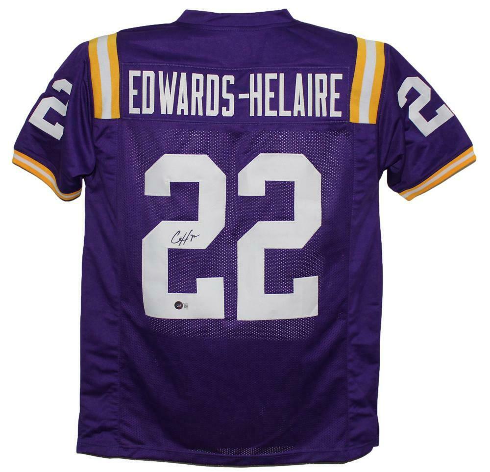 Clyde Edwards-Helaire Autographed College Style Purple XL Jersey BAS 34870 The number in the listing title is just an inventory sku for our records and is not the authentication number. The item pictured is a stock photo unless otherwise noted. This is a custom college style purple XL jersey with sewn on name and numbers that was personally autographed by Clyde Edwards-Helaire. Includes a certificate of authenticity from Beckett Authentication Services (BAS) and Denver Autographs.