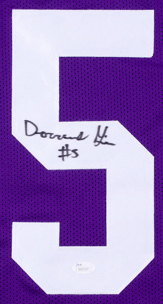 Custom on-field style jersey. Everything is sewn on, size XL. Hand-signed in black felt-tip pen by Derrius Guice.Guice is a star running back for the LSU Tigers. He is the only player in Southeastern Conference (SEC) history with three career games of 250 or more rushing yards. The lot / autograph(s) includes an official James Spence Authentication (JSA) hologram and matching COA for authenticity purposes. The signing of this item was witnessed by JSA.Authentication: JSA COA