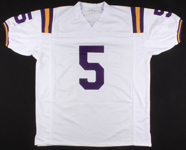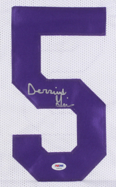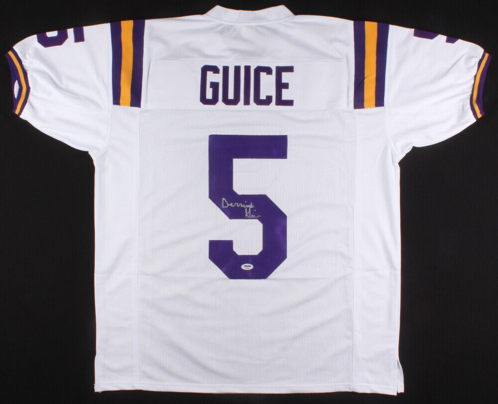 Custom on-field style jersey. Everything is sewn on. Hand-signed in black felt-tip pen by Derrius Guice. The lot / autograph(s) includes an official Beckett Authentication Services serially numbered hologram and matching COA for authenticity purposes.Authentication: Beckett COA