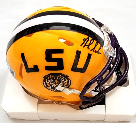 An LSU Tigers Speed Flex Authentic Yellow NCAA Helmet hand signed by Ja'Marr Chase. The item and signature are in excellent condition. Ja'Marr is a Football wide receiver. He was selected in the 1st round of the 2021 NFL Draft by the Cincinnati Bengals. He played college football at LSU. AUTHENTICATION: The item is accompanied by a Beckett Serial Numbered and Databased Hologram