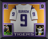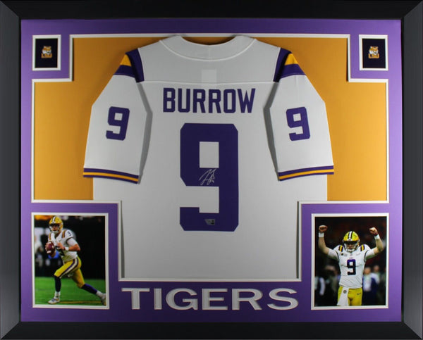Joe Burrow has autographed this official jersey size L name and numbers screen printed on with original tags. Autograph is authenticated by Fanatics Authentic who has him as their exclusive client. Item comes with their exclusive authenticity hologram verified on their site. Simply scan the QR code on the hologram with your phone to verify authenticity. 100% authentic. Frame measures 35x43 and comes with UV plexi glass to protect your item. Any glare in the image is just from the image being taken.