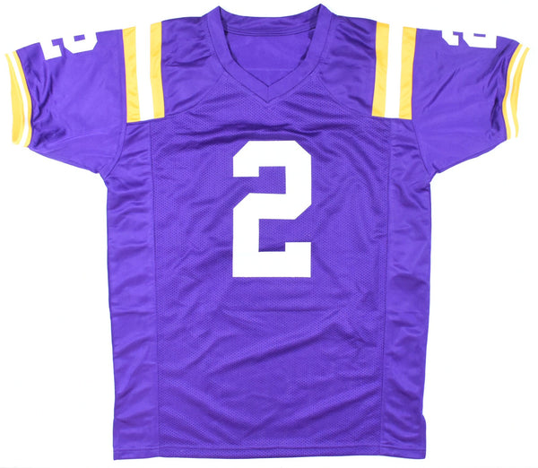 THIS IS NOT AN NCAA JERSEY. THIS HAS NO TAGS, NO LOGOS, NO EMBLEMS. This is a hand autograph of Justin Jefferson of the LSU Tigers on a Custom Made (non-name brand) Authentic Style Jersey with stitched letters and numbers. This item has a Beckett Witnessed Authentication, which comes with a Beckett numbered sticker hologram and a QR Code for verification. You can view this item on the Beckett Authentication website. It was signed either at a public autograph appearance or a private signing. This is a stock photo of the item. Although you may not receive this exact item, the item you receive is virtually identical and brand new in great shape. Jersey size is XL. THIS IS NOT AN NCAA JERSEY. THIS HAS NO TAGS, NO LOGOS, NO EMBLEMS. This is a hand autograph of Justin Jefferson of the LSU Tigers on a Custom Made (non-name brand) Authentic Style Jersey with stitched letters and numbers. This item has a Beckett Witnessed Authentication, which comes with a Beckett numbered sticker hologram and a QR Code for verification. You can view this item on the Beckett Authentication website. It was signed either at a public autograph appearance or a private signing. This is a stock photo of the item. Although you may not receive this exact item, the item you receive is virtually identical and brand new in great shape. Jersey size is XL.