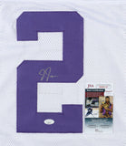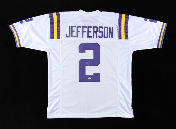 Custom on-field style jersey. Everything is sewn on, size XL. Has been hand-signed by Justin Jefferson.The lot / autograph(s) includes an official James Spence Authentication (JSA) hologram and matching COA for authenticity purposes.Authentication: JSA COA