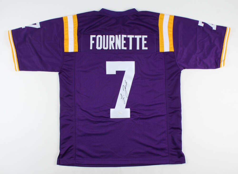 Custom on-field style jersey. Everything is sewn on, size XL. Has been hand-signed by Leonard Fournette.The lot / autograph(s) includes an official James Spence Authentication (JSA) hologram and matching COA for authenticity purposes. The signing of this item was witnessed by JSA.Authentication: JSA COA