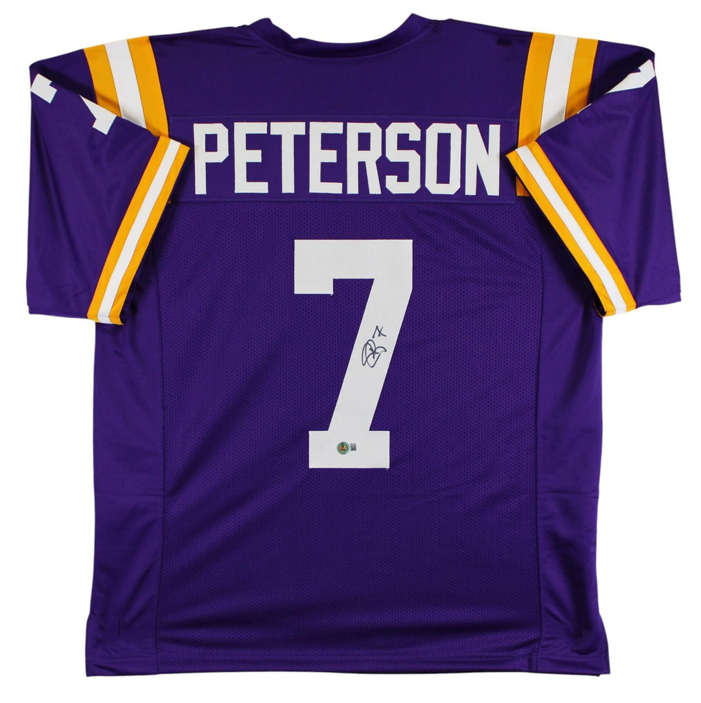 Custom on-field style jersey. Everything sewn on, size XL. Hand-signed by Patrick Peterson (LSU Tigers).The autograph includes an official Beckett Authentication Services serially numbered scannable hologram and QR Code card for authenticity purposes. The signing of this item was witnessed by Beckett.Authentication: Beckett Scannable Hologram with QR Code card