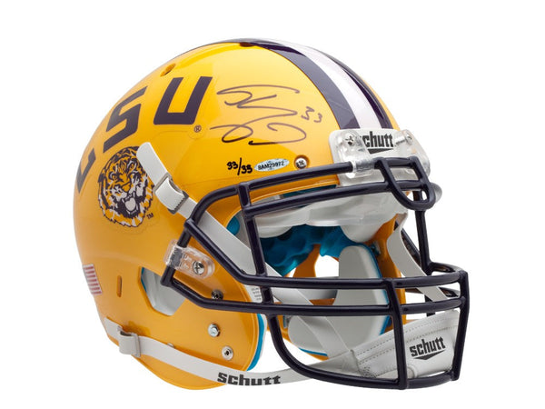 Shaquille O'Neal is one of the greatest basketball players to ever play at Louisiana State University better known as LSU. During his three seasons with the LSU Tigers, O'Neal dominated the SEC and was named conference Player of the Year and consensus first-team All-American two years in a row. His 1991 season was particularly memorable as Shaq was named AP Player of the Year, UPI Player of the Year, and won the Adolph Rupp Trophy as NCAA men's basketball player of the year. Following his storied college career, O'Neal left early for the NBA Draft where he became the number 1 overall pick of the Orlando Magic in 1992. In 2000, Shaq returned to the university and received his bachelor's degree and in turn was inducted into the LSU Hall of Fame where his number 33 jersey number was retired. In 2011, LSU presented Shaquille O'Neal with a 900 pound bronze statue outside of the newly constructed LSU practice facility. Shaq has been known to return to LSU for the first football game of each season. Upper Deck Authenticated has had Shaquille O'Neal sign this authentic Schutt yellow LSU Helmet in black paint pen. Pay homage to O'Neal's alma mater with this unique memorabilia piece. O'Neal's black signature has been authenticated by virtue of Upper Deck Authenticated's Five-Step Authentication Process.