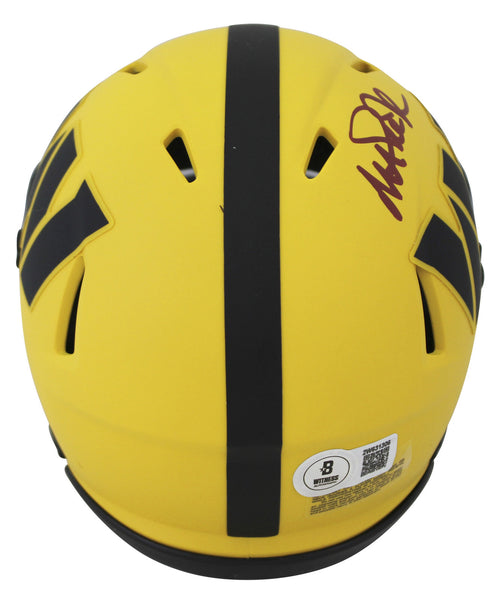 This Autographed Alternate Rave Speed Mini Helmet W/ Uv Mirrored Back Acrylic Display Case has been Personally Signed by Magic Johnson of the Washington Commanders. This item is 100% Authentic to include a hologram by Beckett Authentication Services. This item will come with an affixed Beckett Authentication Services (BAS) authentication sticker, which includes a scannable QR code to verify authenticity. Please note that Beckett no longer provides serial-numbered COA cards, and the attached BAS sticker will serve as the complete authentication for this item. This is a BAS Witnessed Protection Program item which means a Beckett Authentication Service representative was present when this item was being signed. We conducted an autograph signing with Magic Johnson where multiples of the same item were signed. While the photographs are representative of this item, the size, placement and strength of the signature may vary. Each item is hand signed, therefore, each autograph is unique. This item can be verified through BAS Witnessed.