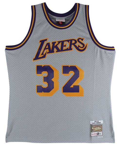 This Autographed Yellow Mitchell & Ness Hardwood Classics Swingman Jersey with the inscription of "HOF 02" has been Personally Signed by Magic Johnson of the Los Angeles Lakers. This item is 100% Authentic to include a hologram by Beckett Authentication Services. This item will come with the new Beckett Authentication hologram that has a scannable QR code rather than the traditional COA. If you would like to have a COA, you are welcome to reach out to Beckett for a printed certification once you receive your item. This is a BAS Witnessed Protection Program item which means a Beckett Authentication Service representative was present when this item was being signed. We conducted an autograph signing with Magic Johnson where multiples of the same item were signed. While the photographs are representative of this item, the size, placement and strength of the signature may vary. Each item is hand signed, therefore, each autograph is unique. This item can be verified through BAS Witnessed. This is a X-Large sized, non-branded, custom-stitched Jersey.