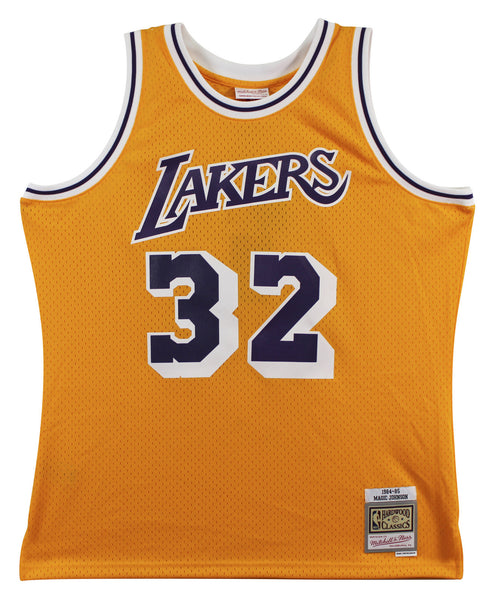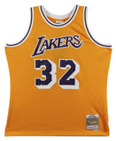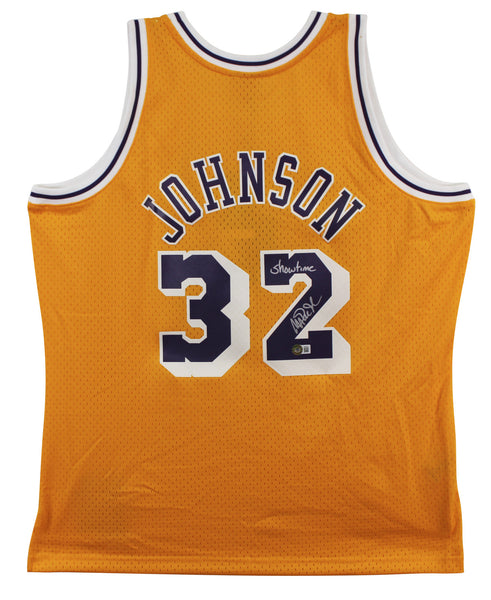 Lakers Magic Johnson "Showtime" Signed Yellow M&N HWC Swingman Jersey BAS Wit