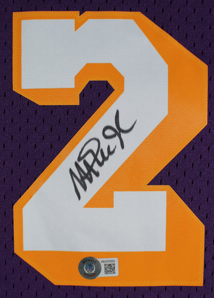 This Autographed 1984-85 Mitchell & Ness Hardwood Classics Swingman Purple Jersey has been Personally Signed by Magic Johnson of the Los Angeles Lakers. This item is 100% Authentic to include a hologram by Beckett Authentication Services. This item will come with the new Beckett Authentication hologram that has a scannable QR code rather than the traditional COA. If you would like to have a COA, you are welcome to reach out to Beckett for a printed certification once you receive your item. This is a BAS Witnessed Protection Program item which means a Beckett Authentication Service representative was present when this item was being signed. We conducted an autograph signing with Magic Johnson where multiples of the same item were signed. While the photographs are representative of this item, the size, placement and strength of the signature may vary. Each item is hand signed, therefore, each autograph is unique. This item can be verified through BAS Witnessed.